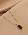 • The Noir Necklace: A minimalist black pendant in a gold-tone setting, designed to add a touch of elegance and boldness to any outfit.