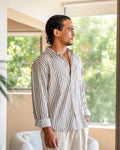 • Gentlemen's Stripe Shirt: Soft, breathable fabric (cotton) in a classic stripe pattern. Relaxed fit with button-up detailing for added versatility.